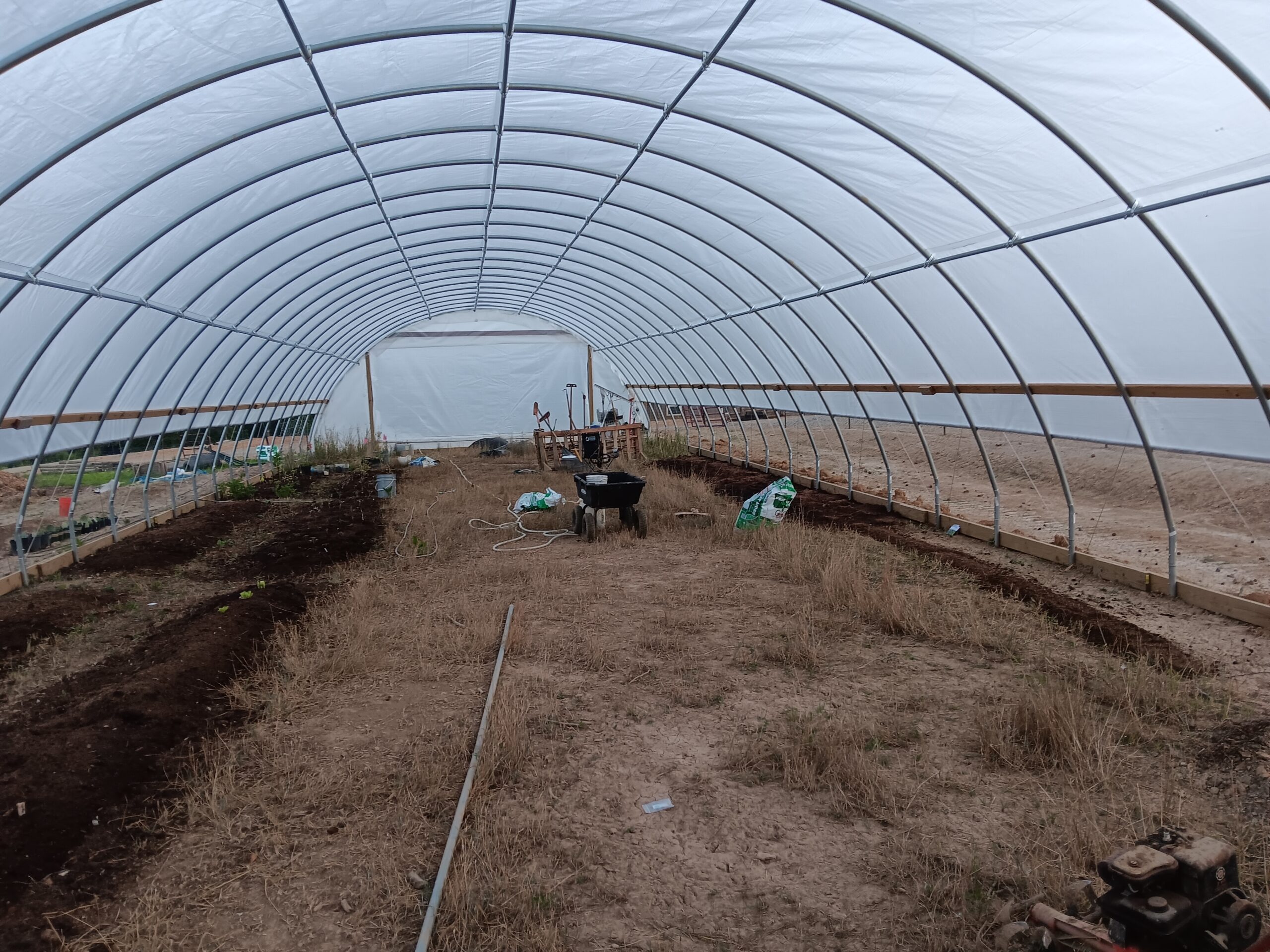 - The first vegetable seeds of 2023 in the hoop house.