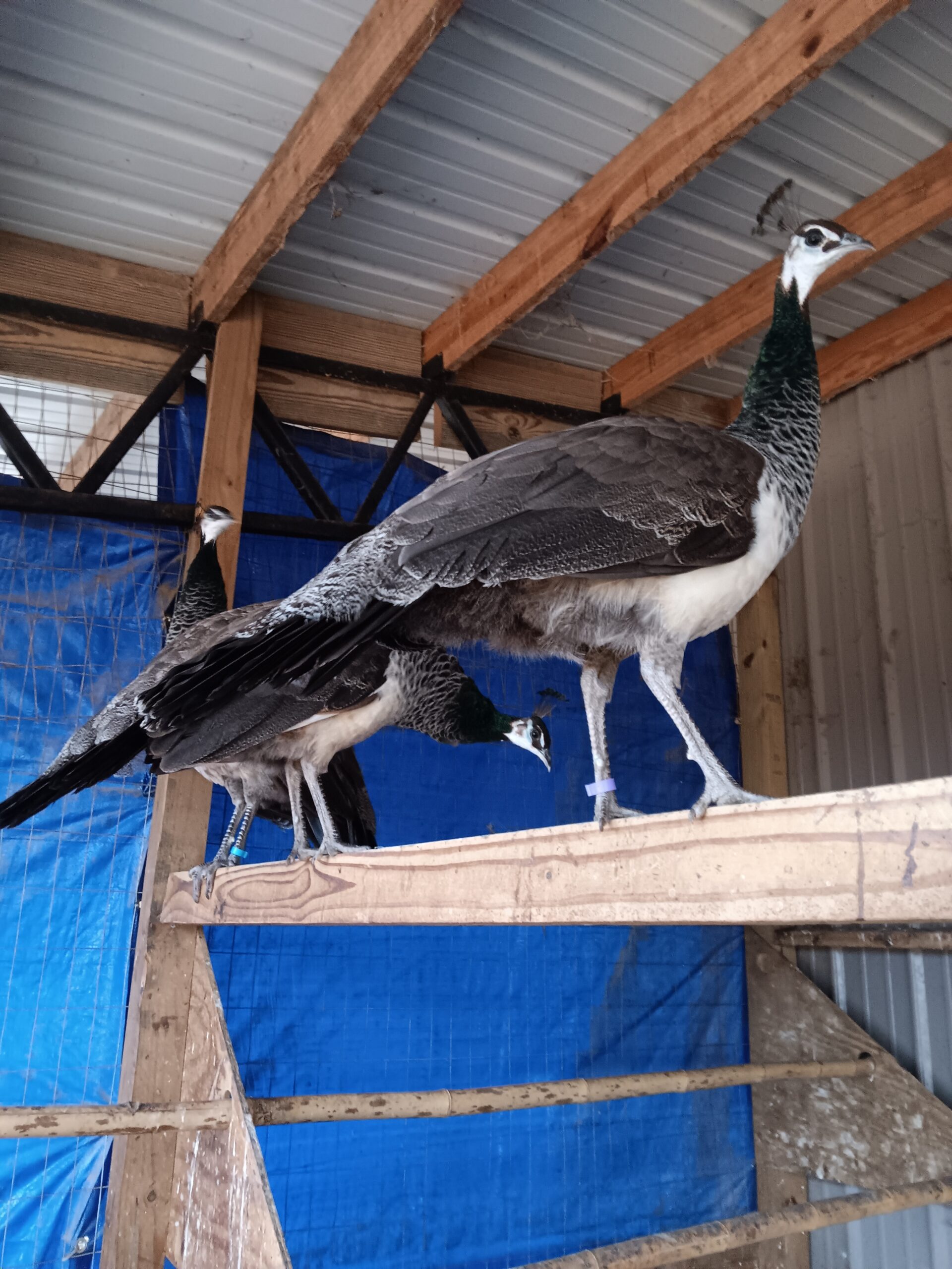 I’m so excited to announce that I FINALLY found three peahens after a three year search! Last year, Tavas, my male peacock left and I’ve been praying that Azure didn’t get any ideas before I could find him some ladies. We drove all the way to Cookville, Tennesse and brought back three peahens which I names Penelope, Petunia, and Pineapple. They will stay cooped up for at least three month so they can learn that I am the treat lady. The last thing I want is for them to wander off trying to find their old home. Once I feel confident that they have bonded with Azure they will be able to free range once again!