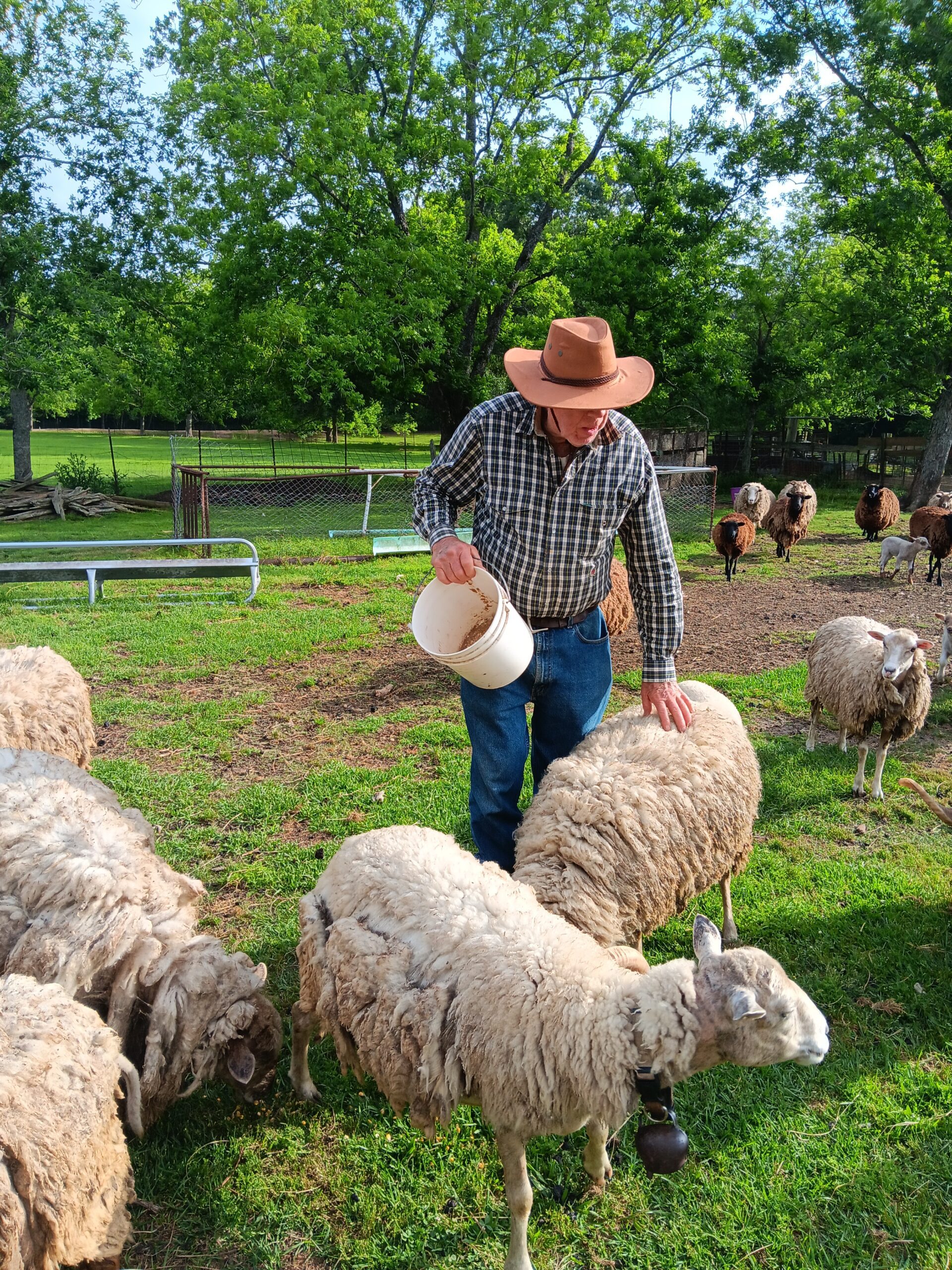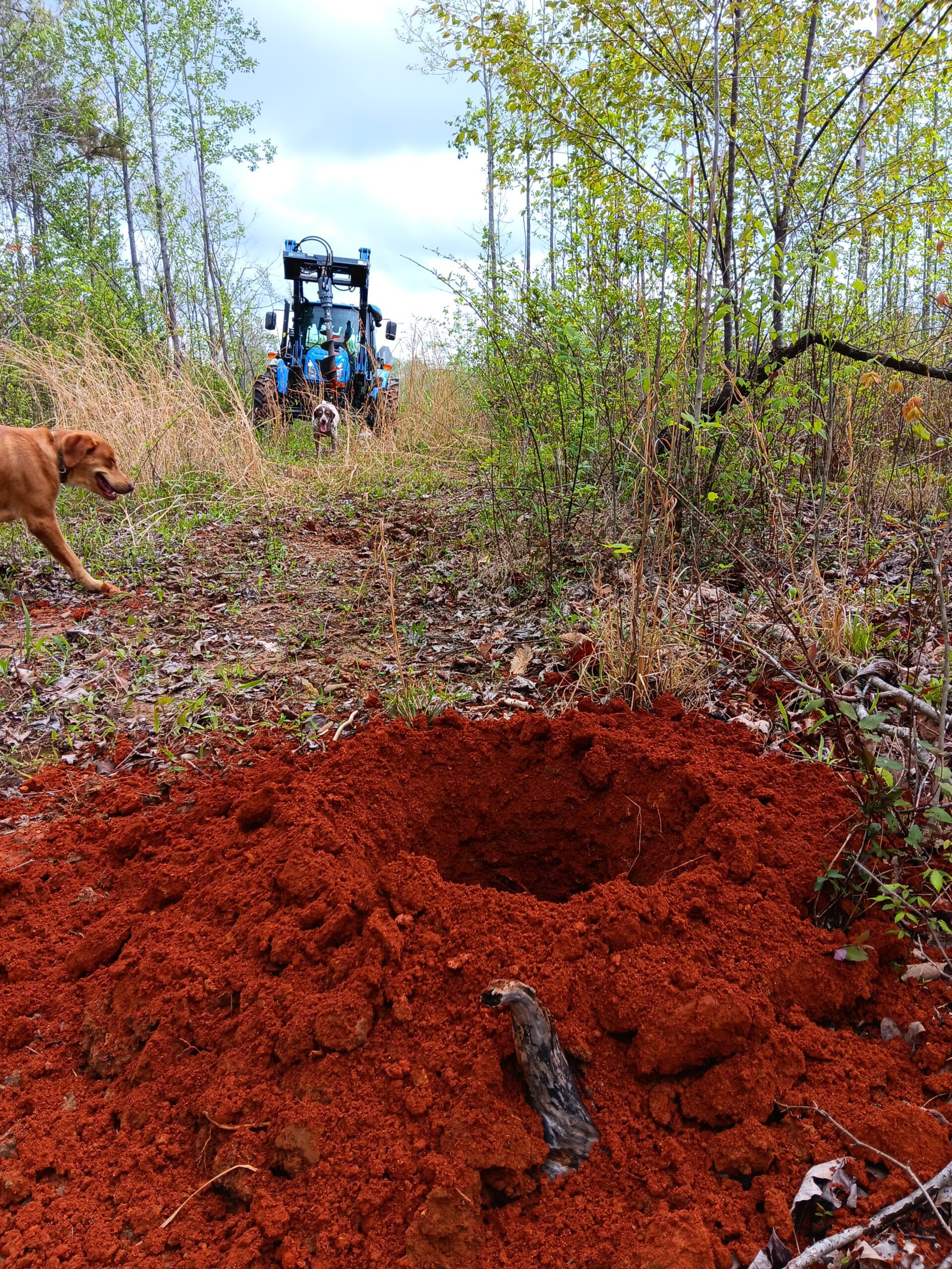 The Pineywoods cattle are in an area with lots of blackberries and some trees. The sheep are in a separate pasture and I am using a permaculture approach and putting my animals to work! They will clear the under story, fertilize the land and build soil. Speaking of soil, check out that vibrant “red dirt” we unearthed while auguring holes for fencing posts. So far it’s the only place with that color soil.