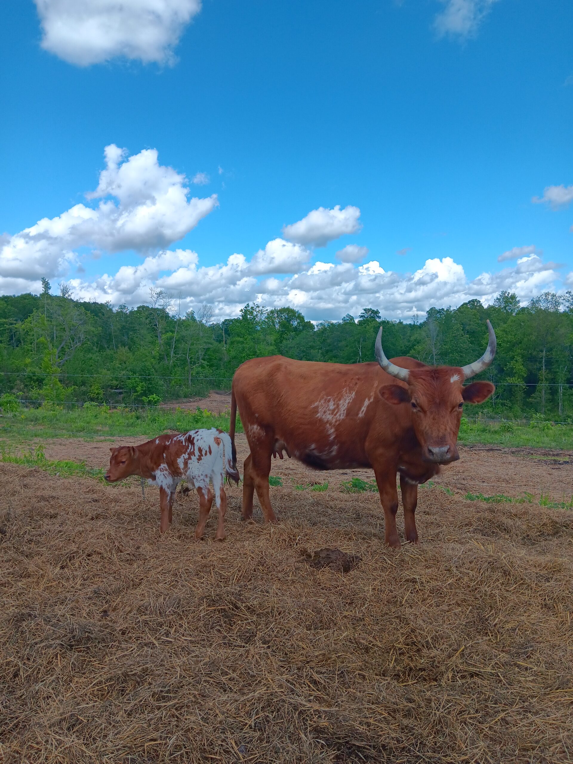 We FINALLY have two Pineywoods baby bull calves! These are the first Pineywoods calves at Healing Homestead. Both Magnolia and Daisy had unassisted births. Magnolia’s calf was already up and nursing by the time we got outside for morning chores. Daisy Rose actually waited for me to go out of town and had her calf after morning chores. I felt like I was constantly following them around asking when baby day would be! We run a bull with the herd so we never know exact conception dates.