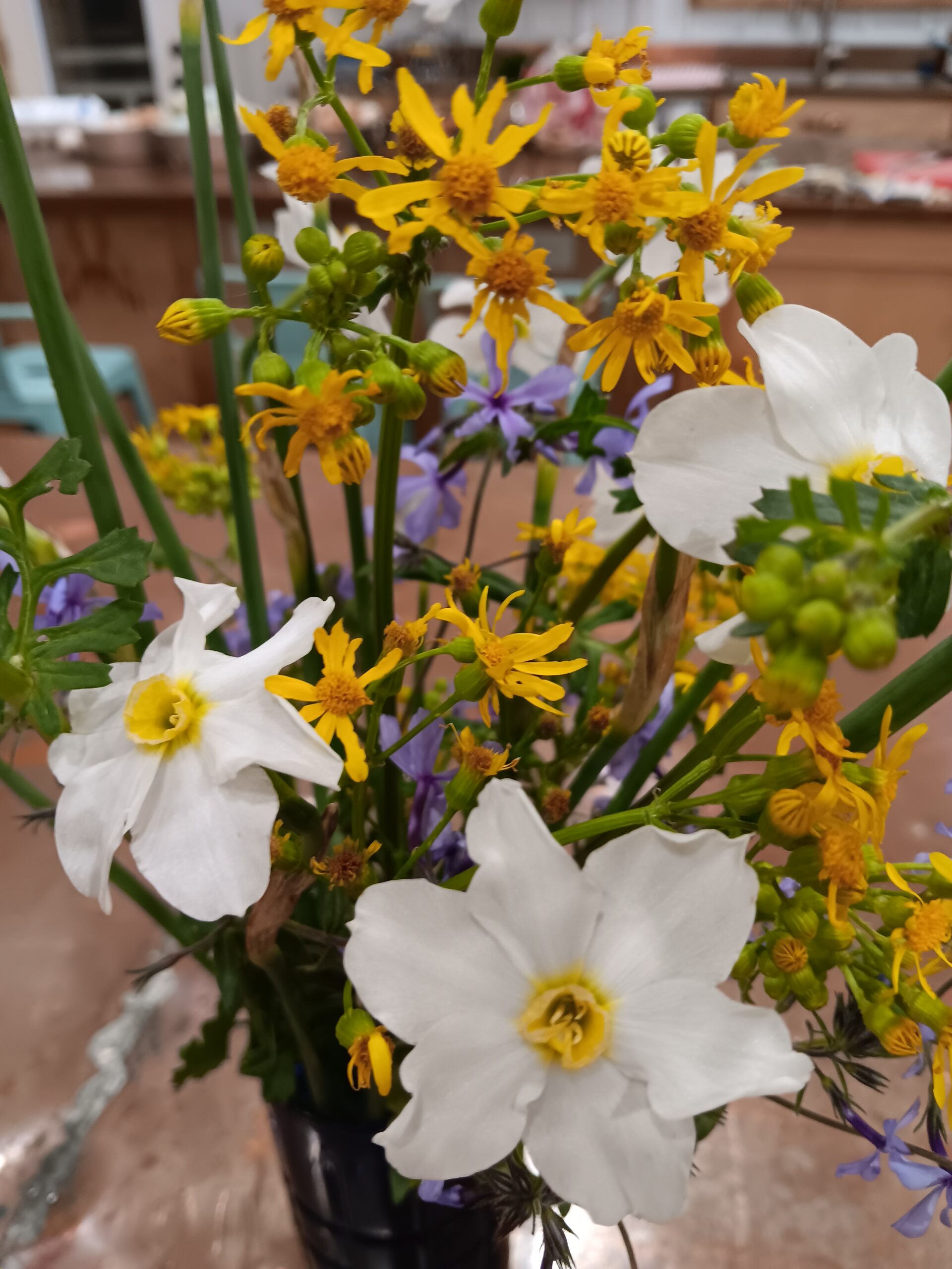 There are actually many native wildflowers that can grow in the forest. We found Trillium, Jack In The Pulpit, Fire Pinks, Paper Whites, and more. These are weeds to some but I thought they made a pretty homestead bouquet.